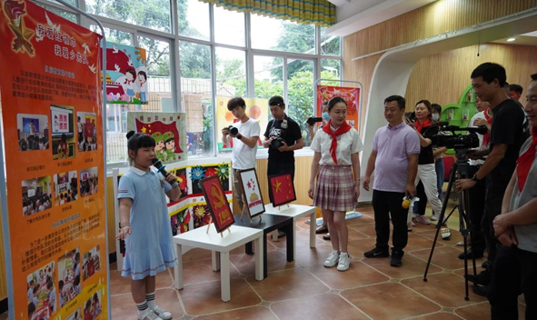 孩子們在成果展板前大方地向嘉賓介紹隊前教育課題開展的活動,精彩的講解贏得陣陣掌聲和贊嘆聲。